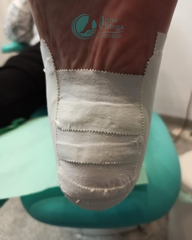 Uno de los tratamientos más inmediatos que se puede llevar a cabo es la realización en consulta de un vendaje LOW DYE TAPING en el que conseguiremos una relajación de la fascia plantar y amortiguación en el talón disminuyendo los síntomas de dolor al apoyar el pie. ✅